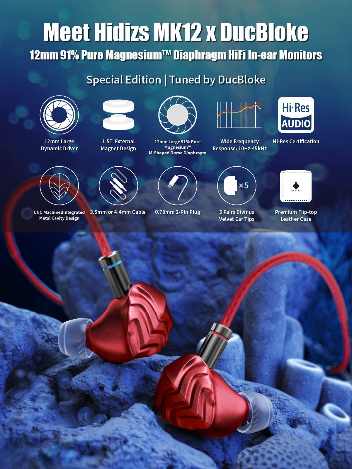 HIDIZS MK12 x DucBloke 12mm 91% Pure Magnesium™ Diaphragm HiFi In-ear Monitors