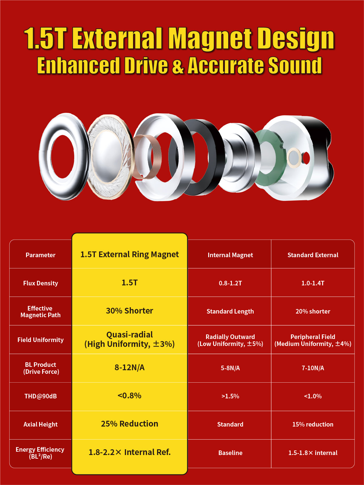 Next-Gen HiFi Performance: 12mm 91% Pure Magnesium Diaphragm & 1.5T Magnetic Circuit