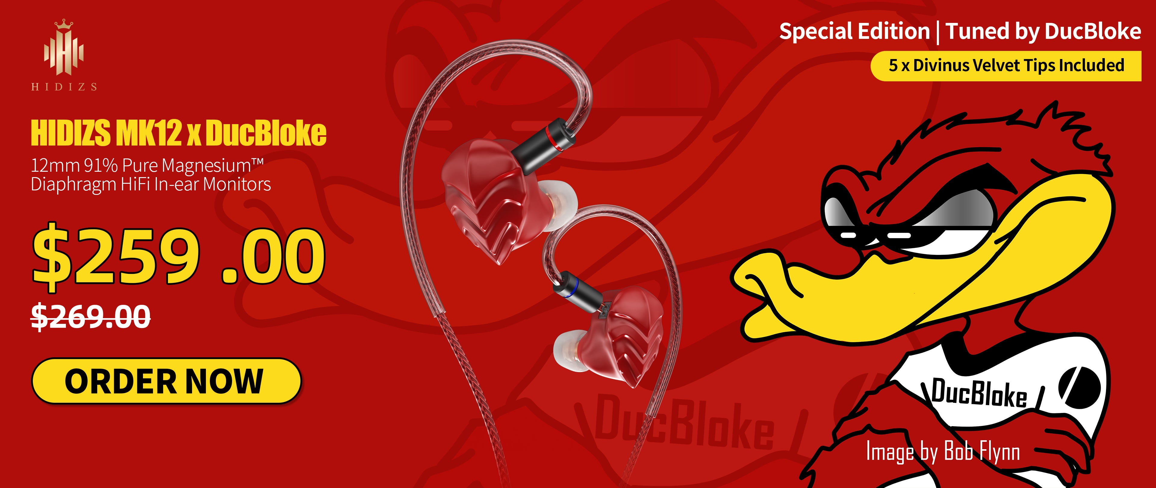 We are proud to introduce the Hidizs MK12 × DucBloke, the first co-branded collaboration in our MK line. Built on the acclaimed MK12 platform with a 12 mm dynamic driver and a 91% pure magnesium diaphragm, this limited-edition model represents a shared pursuit of musicality, precision, and artistry.
