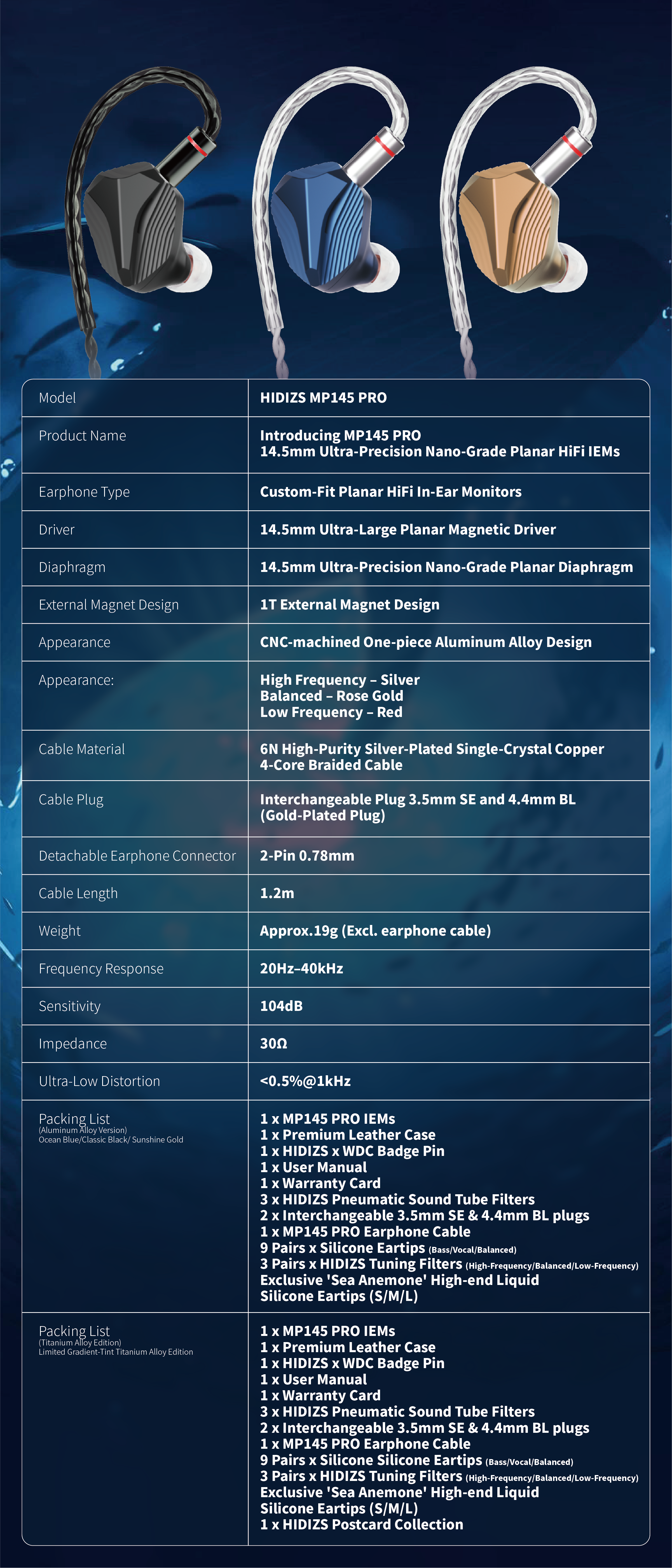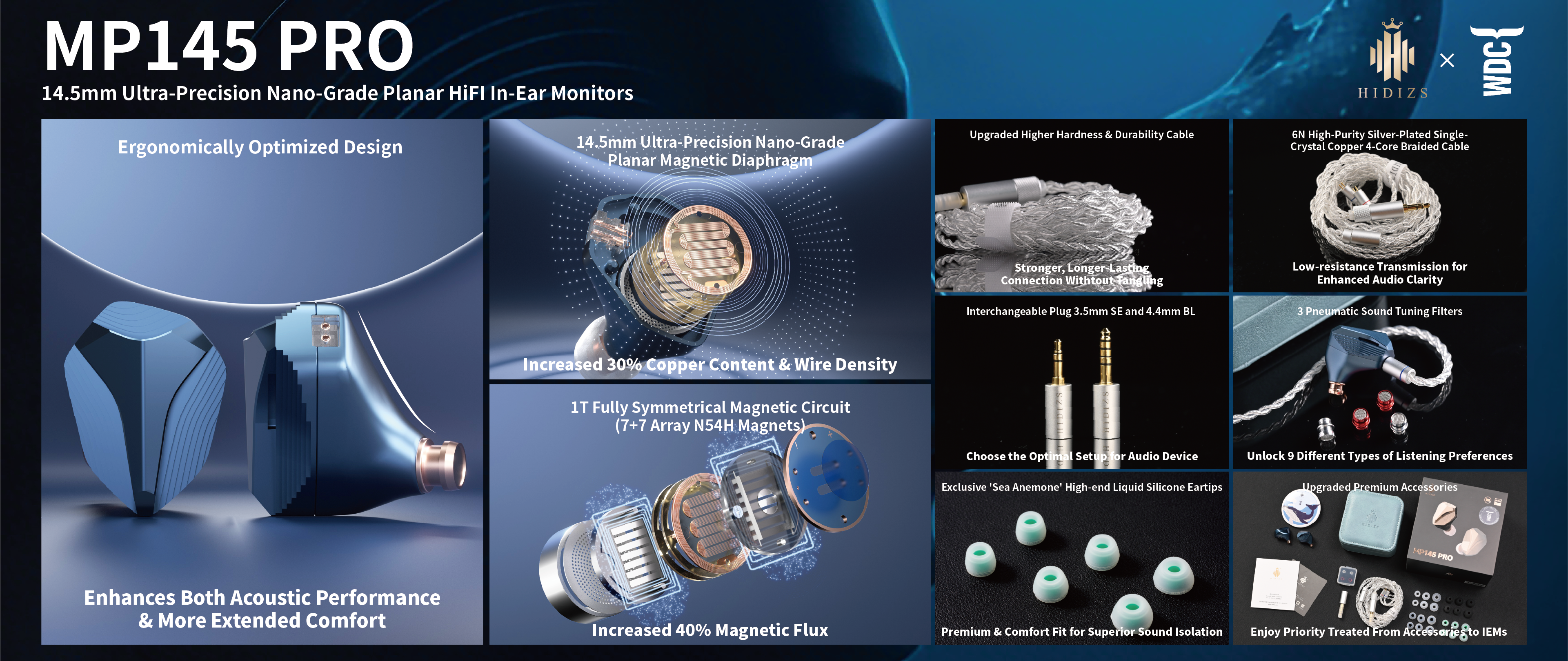 Building on the success of the MP145 and MP143, Hidizs proudly presents the MP145 PRO—an evolution in sound that combines cutting-edge planar magnetic technology with a commitment to ocean conservation.