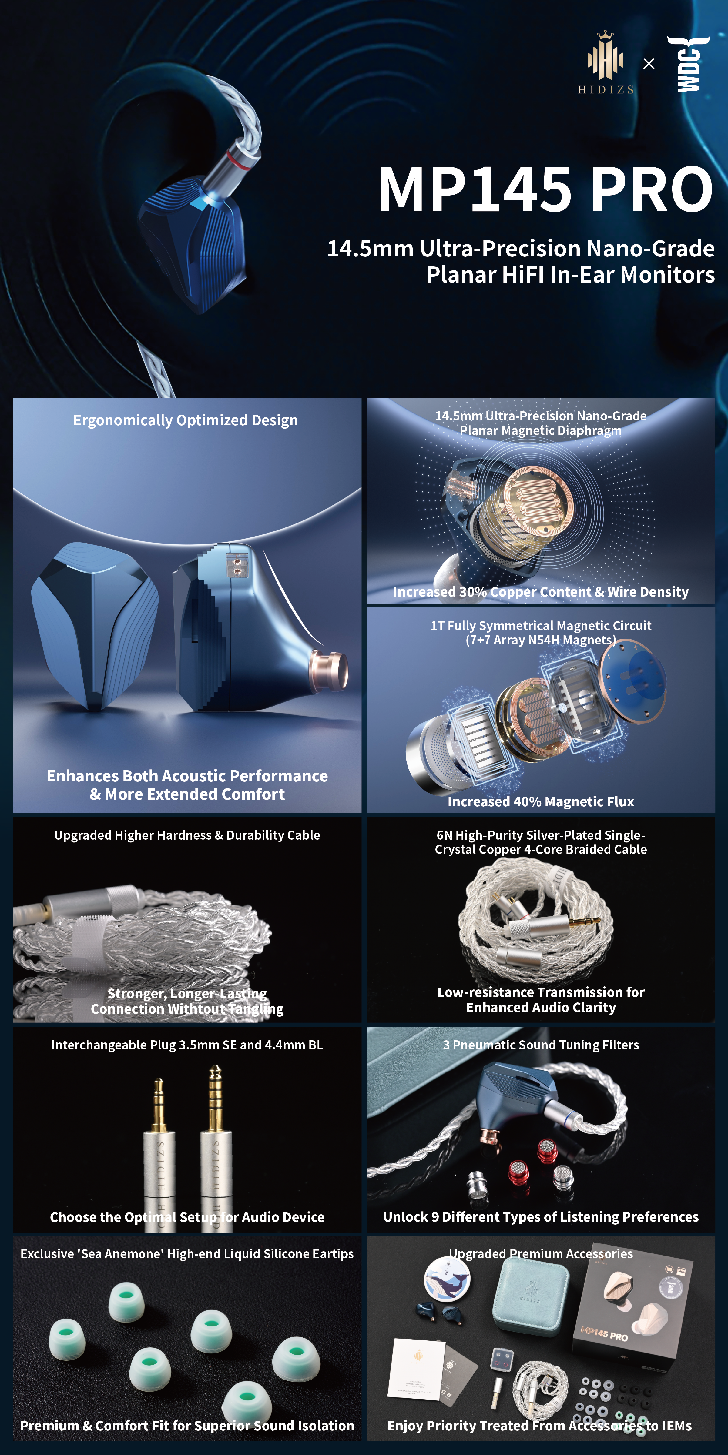 MP145 PRO 14.5mm Ultra-Precision Nano-Grade Planar HiFi IEMs